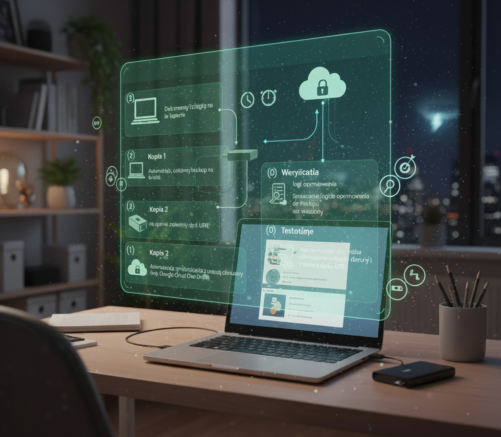 Regularnie testuj swoje kopie zapasowe! Przynajmniej raz na kwartał (lub częściej w przypadku krytycznych danych firmowych) przeprowadź próbną procedurę odzyskiwania danych. Spróbuj przywrócić kilka losowych plików lub cały folder na inne urządzenie, aby upewnić się, że: